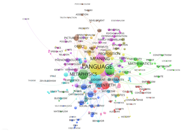 ¶ 5 Leave a comment on paragraph 5 0 ABSTRACT: Sharing the “historicist challenge to analytic philosophy” (Glock 2006) we attempt a “distant reading” of the (mainly) philosophical literature on and about Ludwig Wittgenstein. We start with a descriptive profile of the temporal structure of LW’s work. Then we focus on the literature (i.e. scholarship) on LW as we have been able to represent it through an analysis of bibliographic data drawn from the Philosopher’s Index, an electronic bibliographic database especially devoted to philosophy as a discipline. This is the central section of our paper, and the longer one, in which we attempt to describe and to map with the help of more sophisticated statistical tools Wittgenstein scholarship in its properties and changing forms. We look at the social profile and relations of the authors who contributes to the establishment of LW as a central reference in the current intellectual landscape as well as the network and dynamics of topics to which LW has been associated. We end by proposing a set of possible explanatory frameworks (not really explanations, but research directions for elaborating explanations) for our results. With our paper we would add a “social dimension” to the aforementioned historicist challenge, making a case for an historical-sociological approach to (analytic) philosophy, along the lines of Bourdieu (1988) on Heidegger, Lamont (1992) on Derrida, Gross (2006) on Rorty, and Collins (1999) on the whole philosophical tradition.