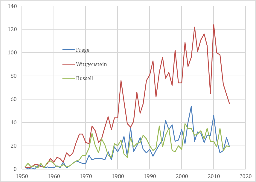 ¶ 51 Leave a comment on paragraph 51 0 Fig. 4. Literature on Wittgenstein, Russell, Frege compared, 1951-2015.